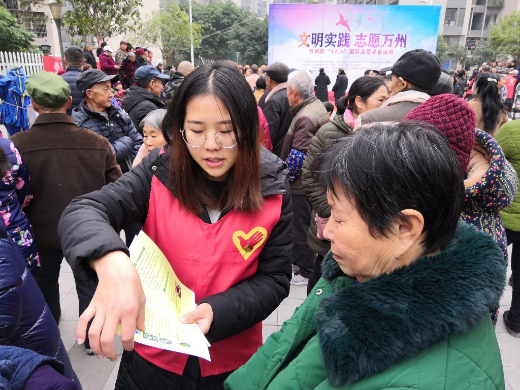 12月5日上午9:00,我院团总支副书记李华林,园艺专业周游博士,以及17名志愿者积极参与了万州区“12·5”国际志愿者日服务活动,主要为社区居民进行食品健康与安全知识科普,解答家用绿植养护相关问题。