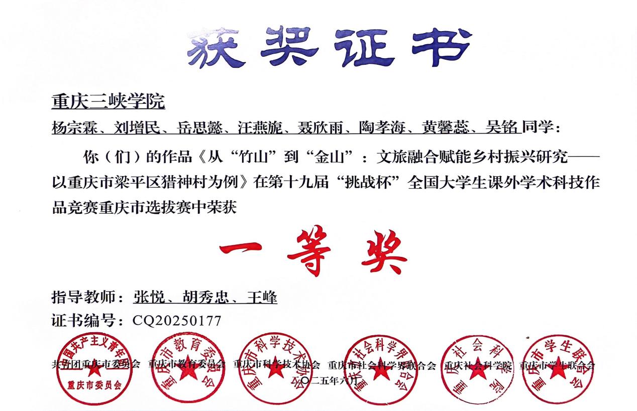 第十九届“挑战杯”全国大学生课外学术科技作品竞赛重庆市选拔赛一等奖