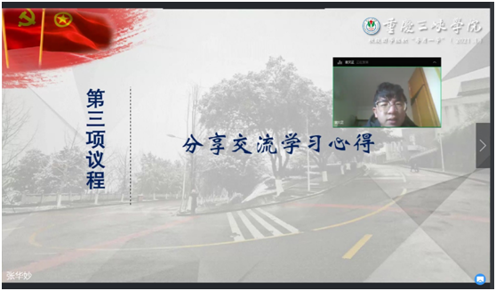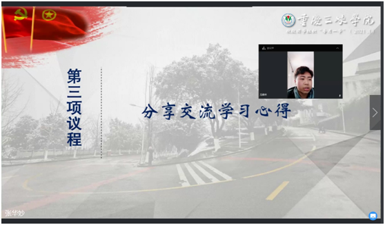 分享交流阶段,校团委组织部龙春林、校学生会杨怡、校团联李雨蒙、校青协袁文正、校艺术团王露等同学围绕本期专题学习内容,结合自身团学工作实际,深入交流并畅谈学习心得感悟,均表态将在以后的团学工作中更要注意学以致用,融会贯通,有力发挥校级团学组织成员在思想上的价值引领和榜样作用,在加快推进社会主义现代化进程中展现青年一代的新担当、新作为。