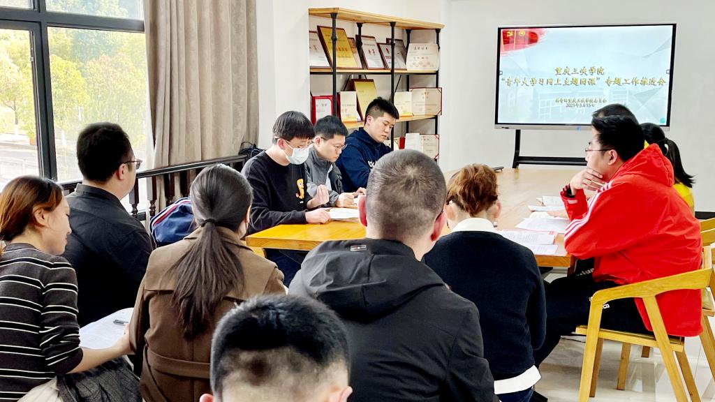 为持续加强对青年大学生思想价值引领,科学合理调动团员青年线上参与团学理论知识学习的主动性、积极性,3月15日下午4:00,我校于科技楼402室召开“青年大学习——网上主题团课”专题工作推进会,校团委副书记王峰、相关科室负责人及工作人员,各二级学院团总支负责老师参会。